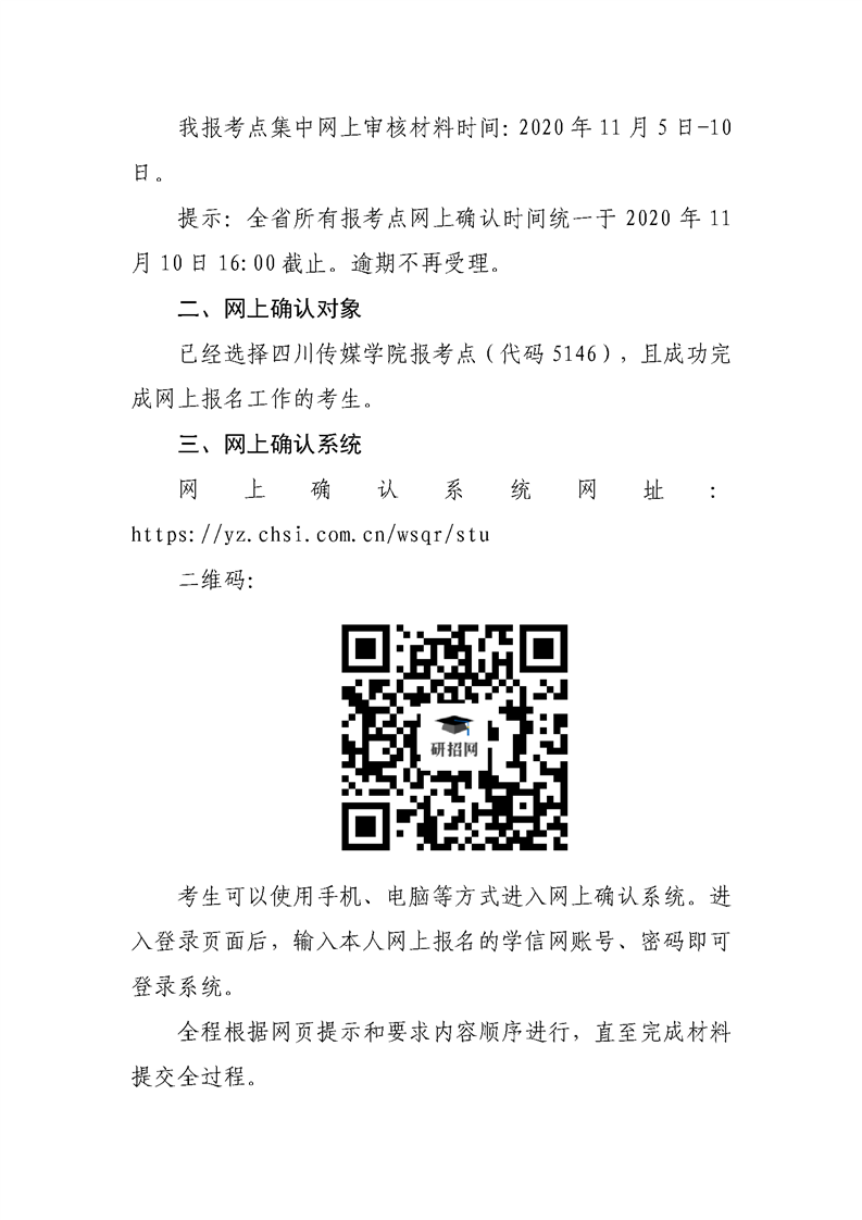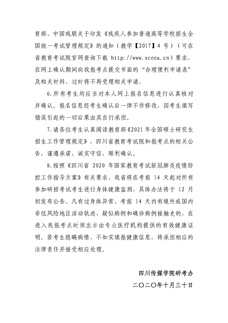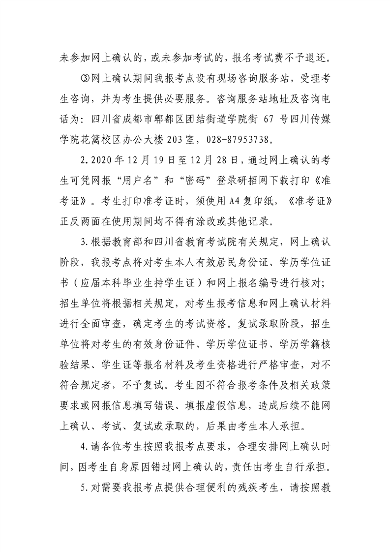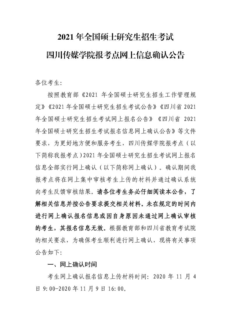 2021年全国硕士研究生招生考试四川传媒学院报考点网上信息确认公告