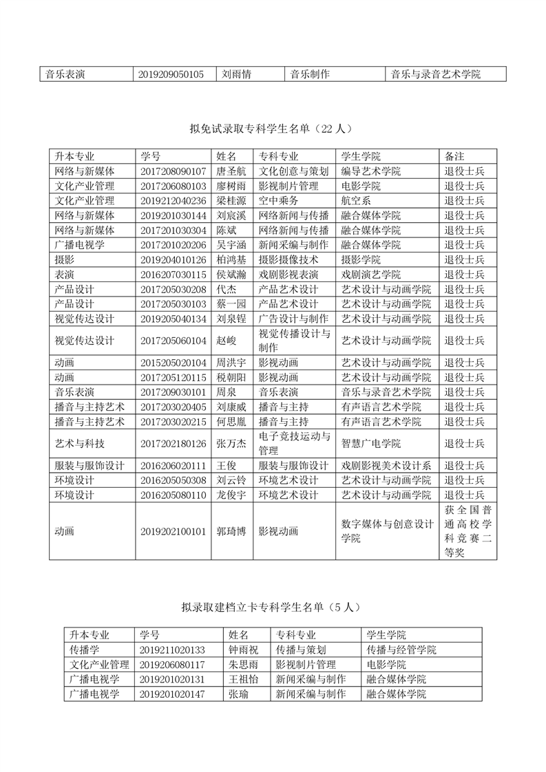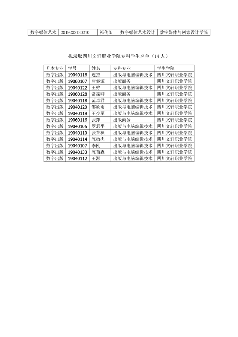 四川传媒学院2022年专升本考试选拔拟录取名单公示
