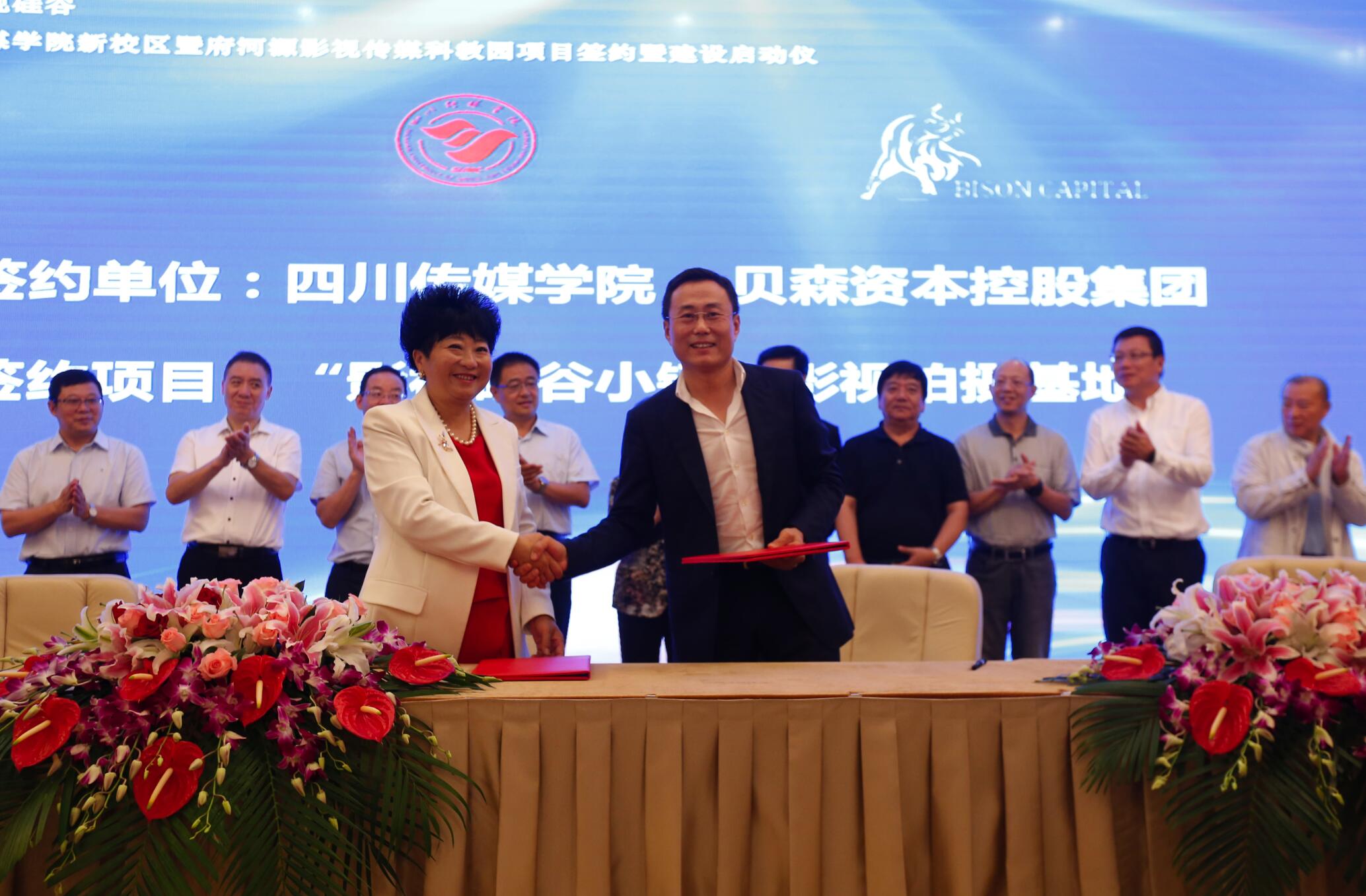 来自境内外30余家业内知名企业,十余家知名企业负责人与张书玉董事长签订了投资合作协议和战略合作协议,意向性投资总金额超过60亿元,其中包括中国首控集团在成都影视硅谷设立20亿元的“教育影视文化产业基金”、同凤凰卫视集团·凤凰教育共同投资6.6亿元建设“凤凰数字媒体产业园”、同壹天文化校企联合投资15亿元建立“中国科幻影视IP孵化基地”等。