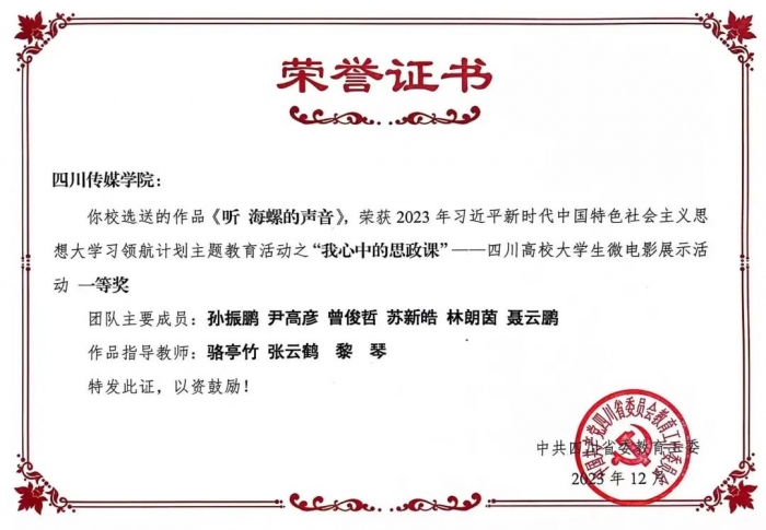 “我心中的思政课”——2023年四川高校大学生微电影作品四川传媒学院作品获奖情况