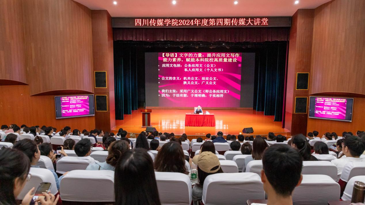 2024年5月20日,中共四川省委党校(四川行政学院)教授、著名秘书学家、公文学专家、公务员考试学专家叶黔达先生做客四川传媒学院2024年度第四期传媒大讲堂。本次讲座以“文字的力量:提升应用文写作能力素养,赋能本科院校高质量建设”为主题,旨在进一步促进学校全面落实为党育人、为国育才的教育方针,积极推广国家通用语言文字规范,加强中华民族共同体意识教育。