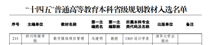 数字媒体与创意设计学院《数字媒体项目管理》教材入选“十四五”普通高等教育本科省级规划教材