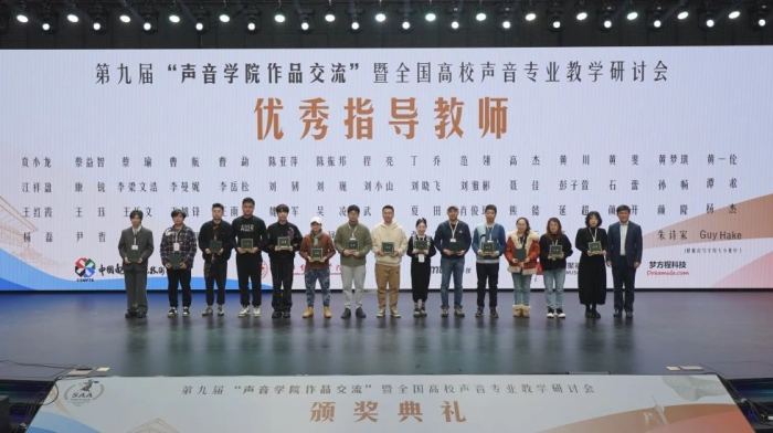 颁奖典礼上,四川传媒学院校长左旭舟教授与北京电影学院声音学院博士生导师黄英侠教授共同为获奖学生颁奖。同时,我校音乐与录音艺术学院教师张珂南代表获奖教师上台领奖,专业副主任惠钰鑫老师也上台接受了荣誉。四川传媒学院校长左旭舟教授(右)、北京电影学院声音学院博士生导师黄英侠教授(左)为获奖学生颁奖