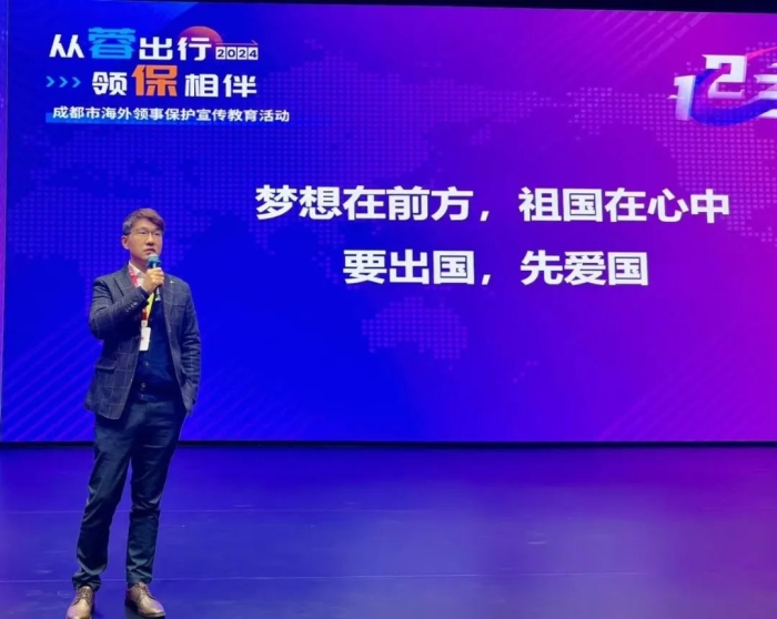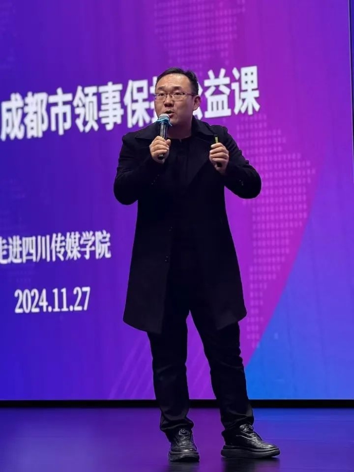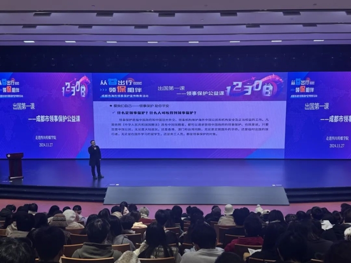 11月27日下午,由成都市人民政府外事办公室主办的“从蓉出行 领保相伴”——成都市领事保护公益课在四川传媒学院西区报告厅成功举办。此次课程邀请了四川传媒学院校友、成都广播电视台主持人、成都市外办领事保护宣传员武世杰进行宣讲。
