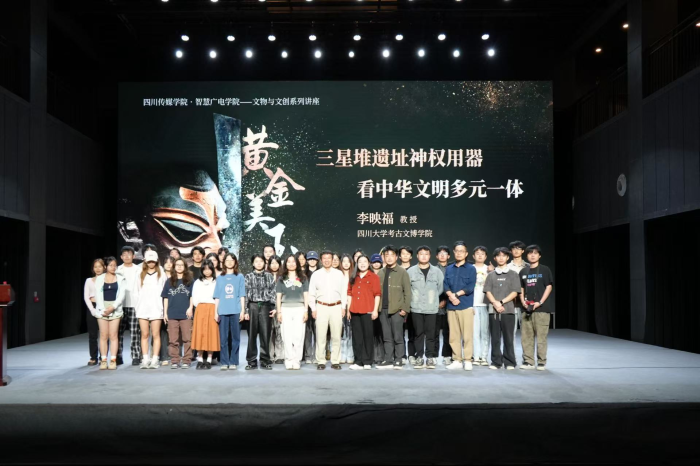 17日晚,四川大学考古文博学院李映福教授带来《黄金和美玉:三星堆遗址神权用器看中华文明多元一体》专题讲座。李教授以幽默风趣的讲述方式,结合三星堆黄金面具、玉璋等文物的考古发现,揭示古蜀文明与中原文化的交融互鉴,阐明“多元一体”的文明格局。其提出的“技术赋能文化IP传播”理念,为艺术与科技、影视技术等专业融合传统文化元素开辟新思路。