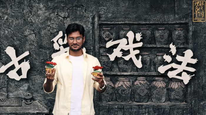 作品由有声语言艺术学院教师孙雨竹、茹娜和外国语部教师邹焱昌联合执导。创作者们将镜头对准了国家级非物质文化遗产——古彩戏法。创作初衷源于一份文化传播的责任:“‘美丽中国’不仅在于山河风光,更在于历经岁月沉淀的文化瑰宝。我们希望搭建一座桥梁,让古彩戏法走出国门,让世界感受这份东方的神奇与匠心。”学生团队说。