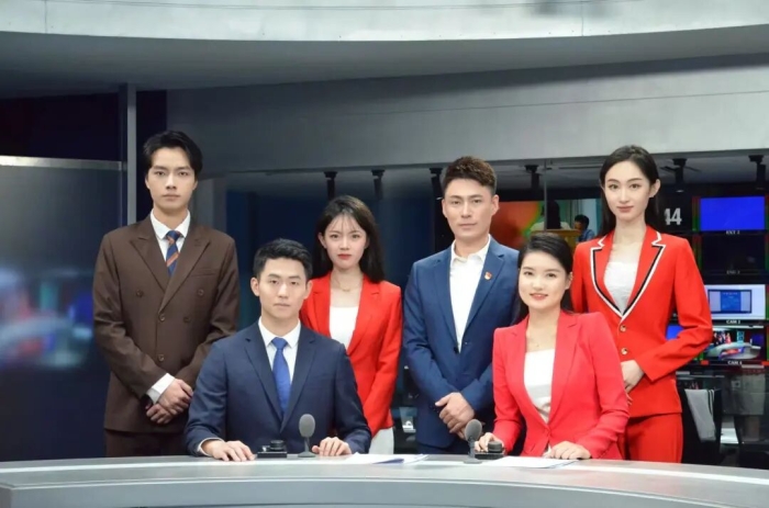 刘旻熹副教授(左四)与学生在学院高清新闻演播间