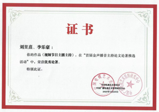 据悉,“金声奖”是经中央批准、由中国广播电视社会组织联合会主办的播音主持领域国家级政府奖,每两年评选一次,代表了该领域的最高专业荣誉。本届颁奖礼首次增设“论文论著推选活动”,旨在鼓励学术研究与理论创新,进一步推动播音主持学科建设与行业发展的深度融合。本次活动由中国电视艺术委员会、中国广播电视艺术资料研究中心联合主办,评选过程严谨规范,具有高度的权威性与行业认可度。