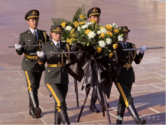祭祀仪式上,四川传媒学院国旗护卫队承担本次清明扫墓仪式。队员们身姿挺拔、神情肃穆,每一步行进都饱含对英烈的深切敬畏,每一个姿态都彰显新时代青年的使命担当。行进间,正步铿锵有力,步幅整齐划一,行进掷地有声。全体队员,始终精神昂扬、毫不懈怠。全体队员以最标准庄重的仪仗礼仪,向革命先烈致以最崇高的敬意。