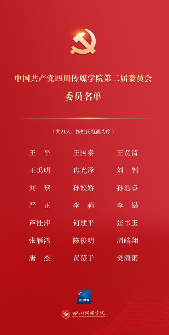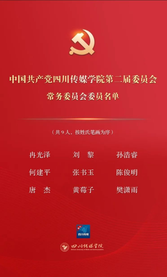 四川传媒学院新一届党委书记、副书记、常委、委员,纪委书记、副书记、委员名单