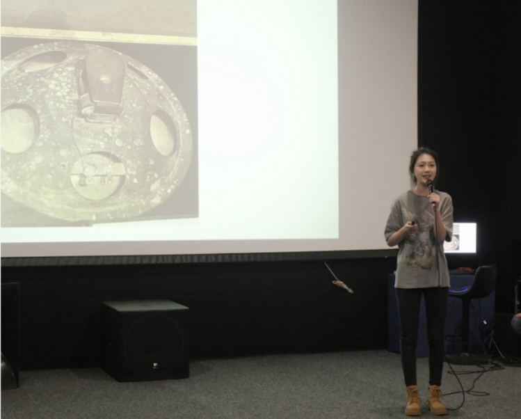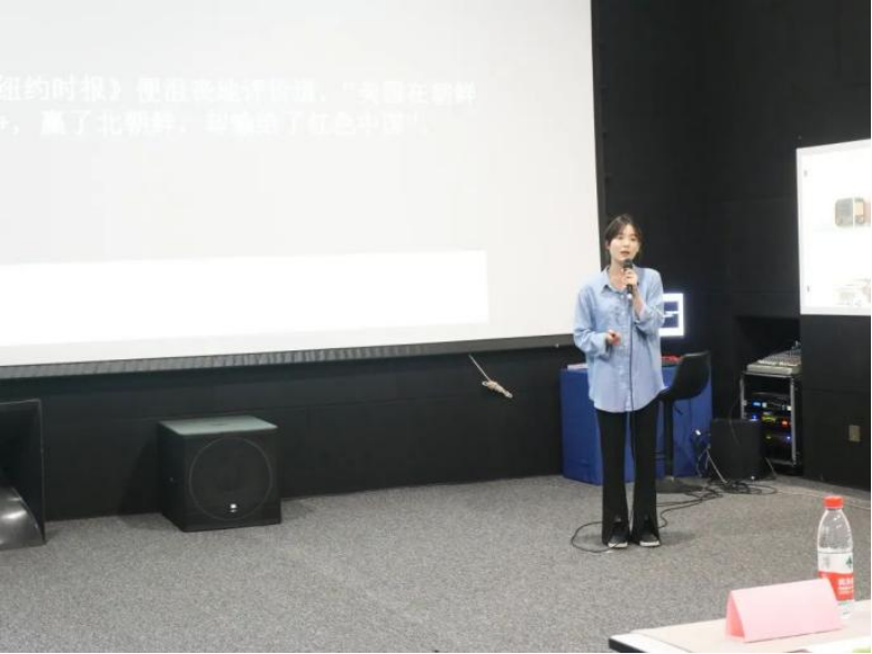 讲解员薄毓音讲述了解放101电影放映机的相关知识;
