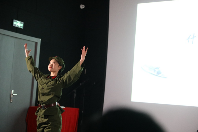 盛宴由李欣蔚同学带来的一首《绒花》和刘圣阳老师表演的舞蹈《芳华》开场,“世上有朵美丽的花/那是青春吐芳华”,用灵魂与生命起舞,一段别样的血色浪漫娓娓道来,歌声贯穿其中,一代人的芳华随着歌声流动,青春化作有形的乐章浮现在眼前。