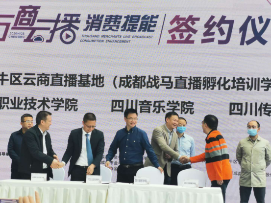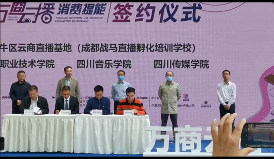 4月28日,四川传媒学院综艺学院与金牛区云商直播基地(成都战马直播孵化培训学校)正式签署合作协议,共建四川传媒学院音乐系实习基地。四川省商务厅、成都市委统战部、市商务局、市人社局、市新经济委、金牛区区委、区政府等相关政府部门领导出席共同见证了这一历史时刻。