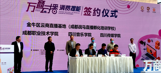 当天活动由成都市金牛区国际商贸城功能区管委会、成都金牛区商务局、金牛区投促局主办,金牛区云商直播基地(成都战马直播孵化培训学校)、伊厦成都国际商贸城股份有限公司承办,是为加快传统商贸产业上云入链,本着校企结合促发展,让学生零距离接触就业岗位,加速推进直播经济新发展,培育壮大校企结合、校企合作新模式,当天成都电子商务教育集团、四川音乐学院、四川传媒学院与金牛区云商直播基地(成都战马直播孵化培训学校)签订了合作协议。